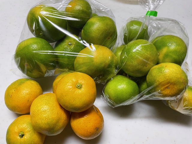 みかんの見た目はまだ緑色だったり、薄ら黄色っぽかったり……で、酸っぱい感じがするけれど、食べてみると……